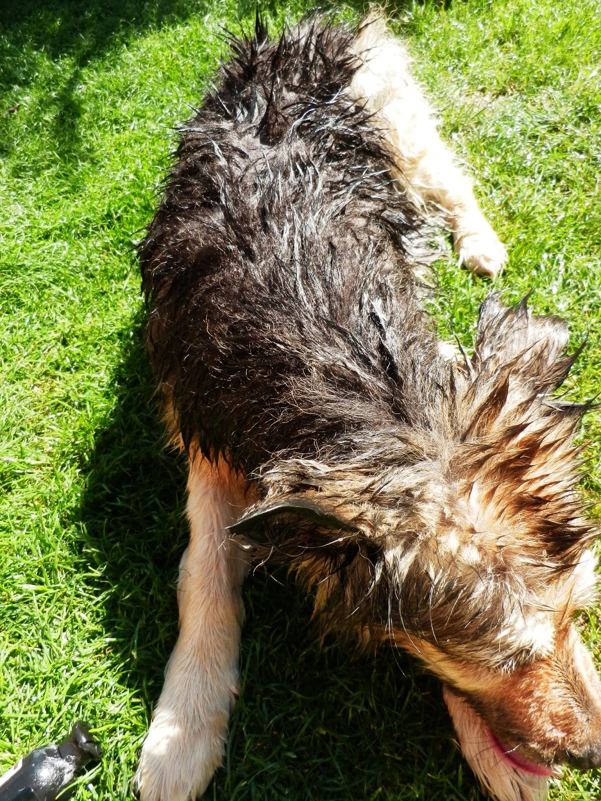 przeminął w spokojnej, leniwej atmosferze. Cały czas prawie na leżaku. Nawet trawy nie chciało mi się skosić - mam lenia. Z drugiej strony jednak trzeba korzystać ze słońca, bo u nas jest dozowane jak lekarstwo. Na upały nie narzekam, bo zwyczajnie ich nie ma. Jak patrzę w tv na prognozy pogody, to u nas zawsze najchłodniej. Polski biegun zimna przeniósł się z Suwałk na Wybrzeże. Jedyny, taki na prawdę ciepły dzień był w ubiegłą sobotę - 26 stopni w ciągu dnia, a wieczorem 20. Miło było posiedzieć wieczorową porą w ogrodzie. Wczoraj w nocy przeszła burza, grzmiało i błyskało dość groźnie, ale deszczu poskąpiło. Nadal sucho. Dawno porządnie nie padało. Przydałby się taki bardzo intensywny, ciepły deszcz. Dorciucha doczekała się kąpieli. Na początku nie była zadowolona, próbowała nawet zwiać, ale efekt końcowy, z dużą ilością ciepłej wody do spłukiwania, przycięte futro i pazury, i dokładnie wyczyszczone uszy, chyba ją zadowolił. Kąpiemy ją tylko latem, w ciepłe dni. Zimą ma przerwę, bo nie mieści się w brodziku. Starość daje się jej we znaki. Ma problemy z poruszaniem się, szybko się męczy, schudła i zrobiła się "koścista". No i upór! Uparta strasznie. Za wszelka cenę próbuje postawić na swoim - chyba już jej zwisa... ;)